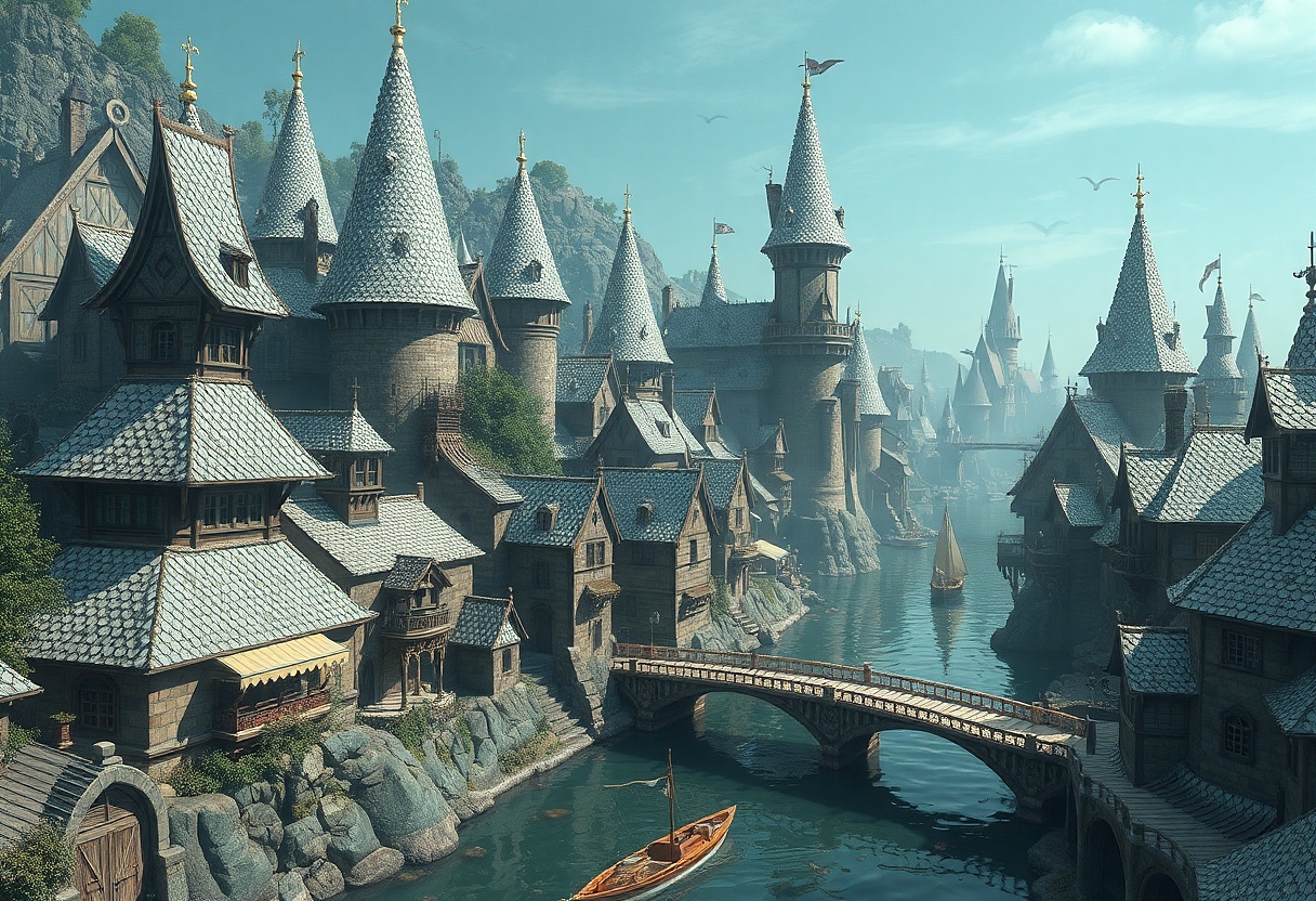 Chvíli potom je přišli vyzvednout čtyři vojáci vedení kapitánem královniny stráže, sirem Tessyanem. Kráčeli po lávkách klenoucích se nad vodními cestami do středu města i podél domů na nábřežích. Na úzkých chodnících se proplétali kolem krámků s rybami, uzeným želvím masem a cizokrajnou vodní zeleninou mezi davy snědých hlasitě povykujících domorodců. Z široce otevřených oken vlály záclony, jejichž vlákna se třpytila v paprscích zapadajícího slunce. Zach usoudil, že jsou nejspíš upletené z vodních travin stejně jako látky, z kterých tu vyráběli oblečení. Šedivé drsné fasády domů byly obrostlé popínavými sytě fialově kvetoucími a pronikavě vonícími liánami, v jejichž listoví rejdila chlupatá stvoření, vydávající zvláštní cvakavé zvuky. Tvorové o velikosti dětské dlaně, zbarvení snad ve všech odstínech zelené a modré, kulili velké šedé oči a cenili drobné ostré zoubky. „Drndalové,“ prohodil mdlým tónem Igor, když si všiml, že Zacha zaujaly. „Hlavně na ně nesahej.“