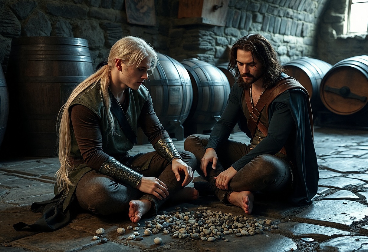 Dalšího dne sestoupili Igor se Zachem do sklepa Treyina domu, aby si beze svědků promluvili o magii. Usadili se ve skladu, kde v chladu a tmě zrály zásoby puškvorcového piva. Stěny rozlehlého sálu lemovaly naležato umístěné sudy ukotvené ve štěrkovém loži. Sudů bylo asi třicet a každý byl vyrobený ze dřeva stromů, které na Bet-Daranu nerostou, a tak obrovský, že by se v něm mohla zabydlet desetičlenná rodina i se služebnictvem a domácími mazlíčky.