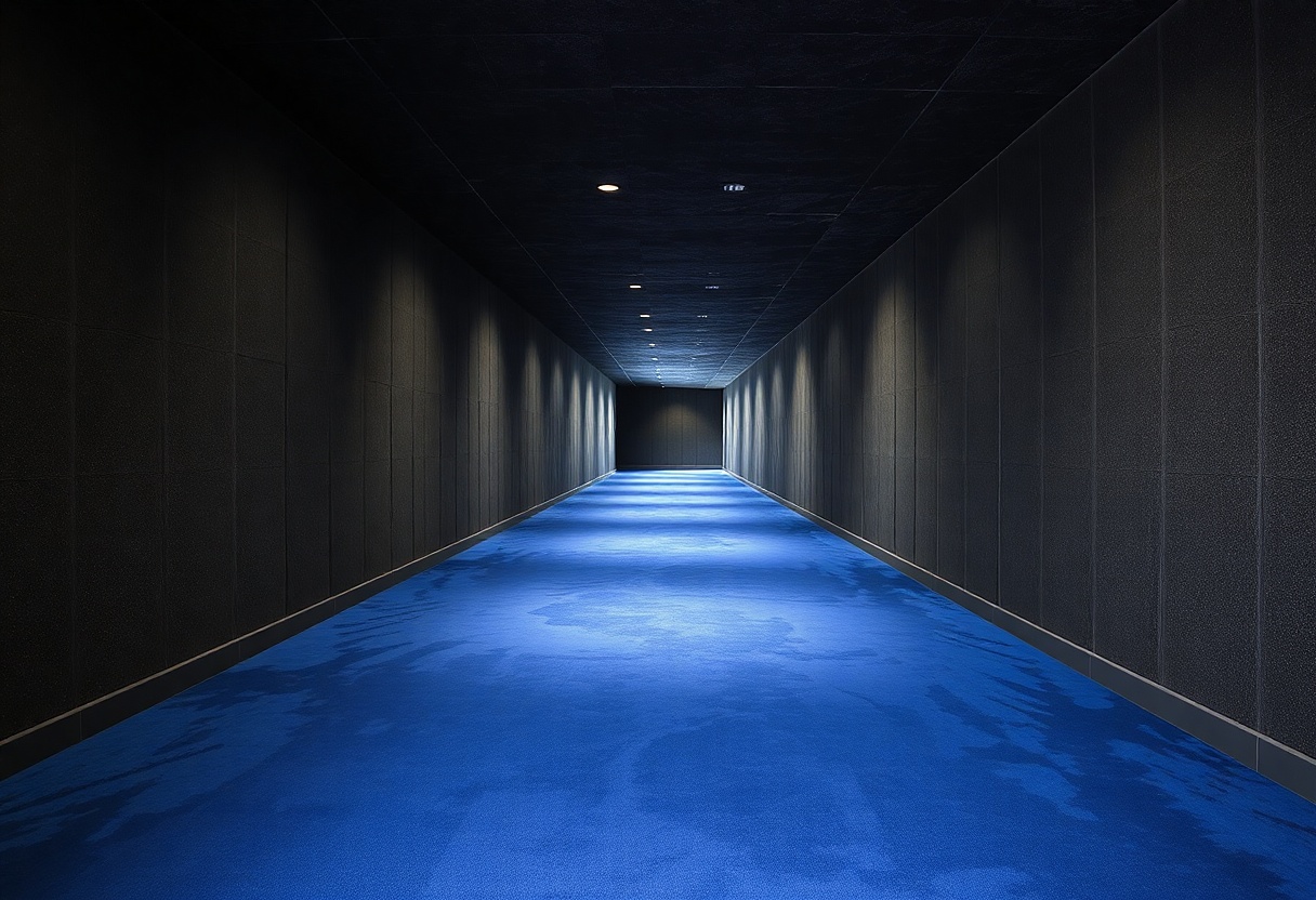 Otevřela se před nimi další chodba, tentokrát s temně modrým kobercem. Její stěny byly černé a drsné, jako kdyby byly ze sopečného kamene. S puchýřky a prohlubněmi připomínaly bublající hladinu vřelé lávy, která rázem ztuhla.
