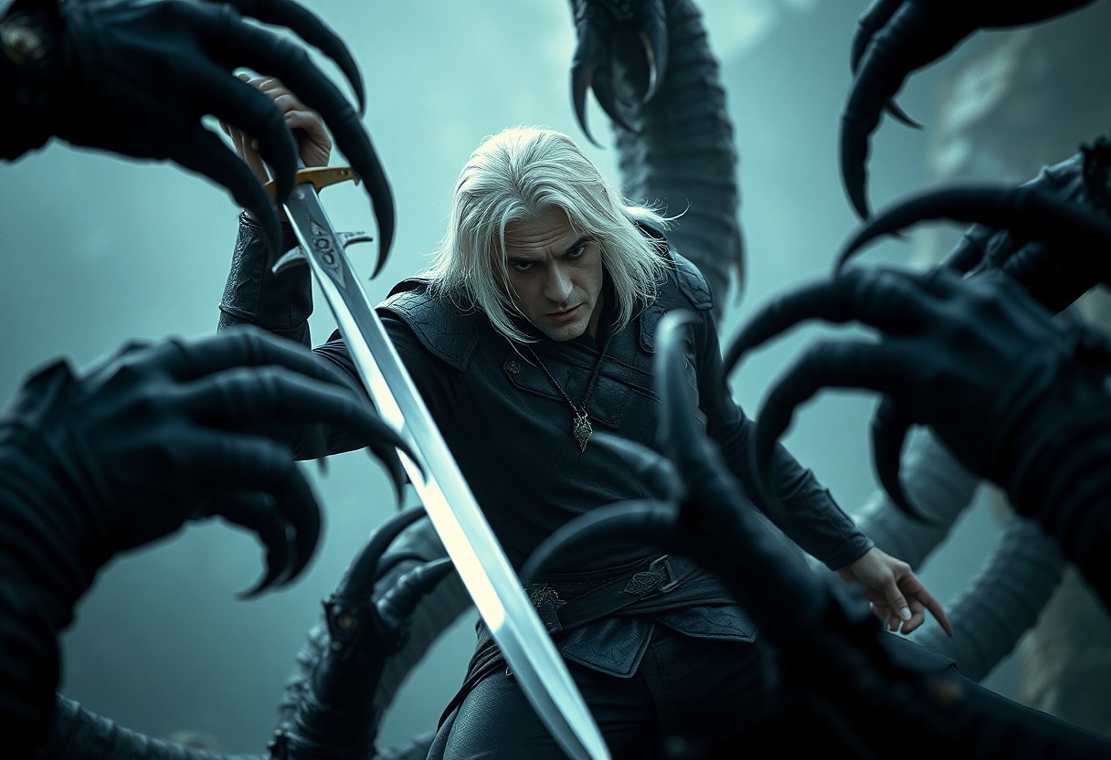 S jedním mečem v pravé a s druhým v levé ruce se pustil do toho, co zbylo z Urvala. Střídavě se napřahoval a sekal. Pracoval důkladně a metodicky. Pak meče odhodil. Aniž by o tom nějak zvlášť přemýšlel, vyčaroval plameny, aby ty zbytky sežehl. Místnost se naplnila nasládlým zápachem spáleného masa. Nekonečně dlouho pak na tím škvarkem klečel, aby se ujistil, že je „to“ určitě bezpečně mrtvé.