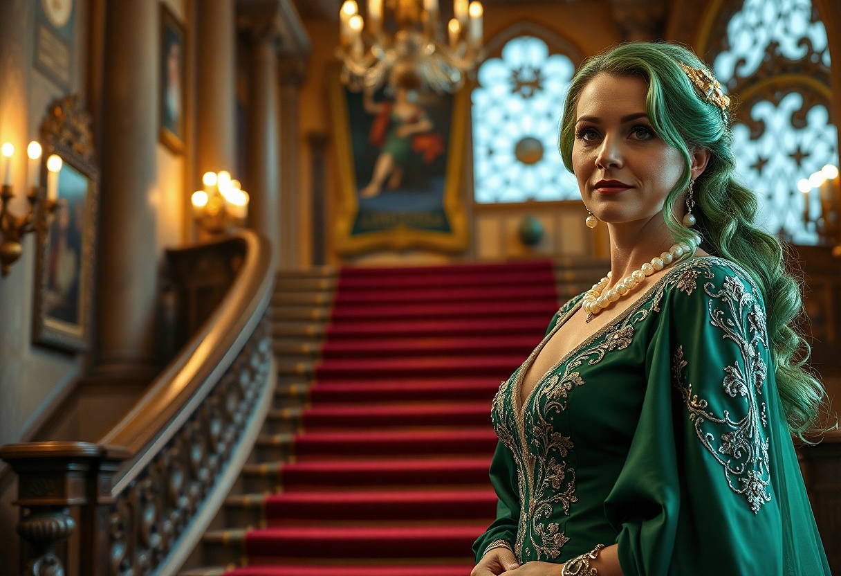 Po schodišti z patra sestupovala drobná žínka navlečená do temně zelené tuniky z lesklé látky, která jí sahala do půli stehen a světlých přiléhavých kamaší. Na křehká ramena jí spadaly prameny měděně zbarvených vlasů. Její pleť byla světlá stejně jako pleť kapitána Tessyana, z čehož Zach odvodil, že s ostatními smrtelnicemi v hale nemá společný biologický základ. Tento závěr ještě potvrzovala jemná stříbrná aura magického rozhraní, která kněžnu obklopovala. Rysy v její tváři se nápadně podobaly těm kapitánovým, což nejspíš znamenalo, že jsou příbuzní.