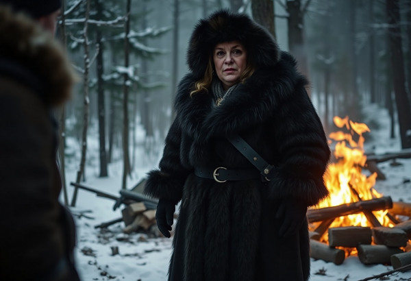 „Je to mokrý, vy stračeny! Nechte teho a včil!“ zařvala na ně obrovská ženská hlasem polního brigadýra. Ta osoba byla stejně široká jak dlouhá, na hlavě čepici z kožešiny skalního rysa. Její kožich byl nejspíš z medvěda. Vážil skoro tolik, kolik ona sama. Pachtila se s trojnožkou od stanoviště soumarů a lamentovala: „Šak sem vám řikala, počkéte, až se to rozhoří! Všecky ste hlópý jak troky...“