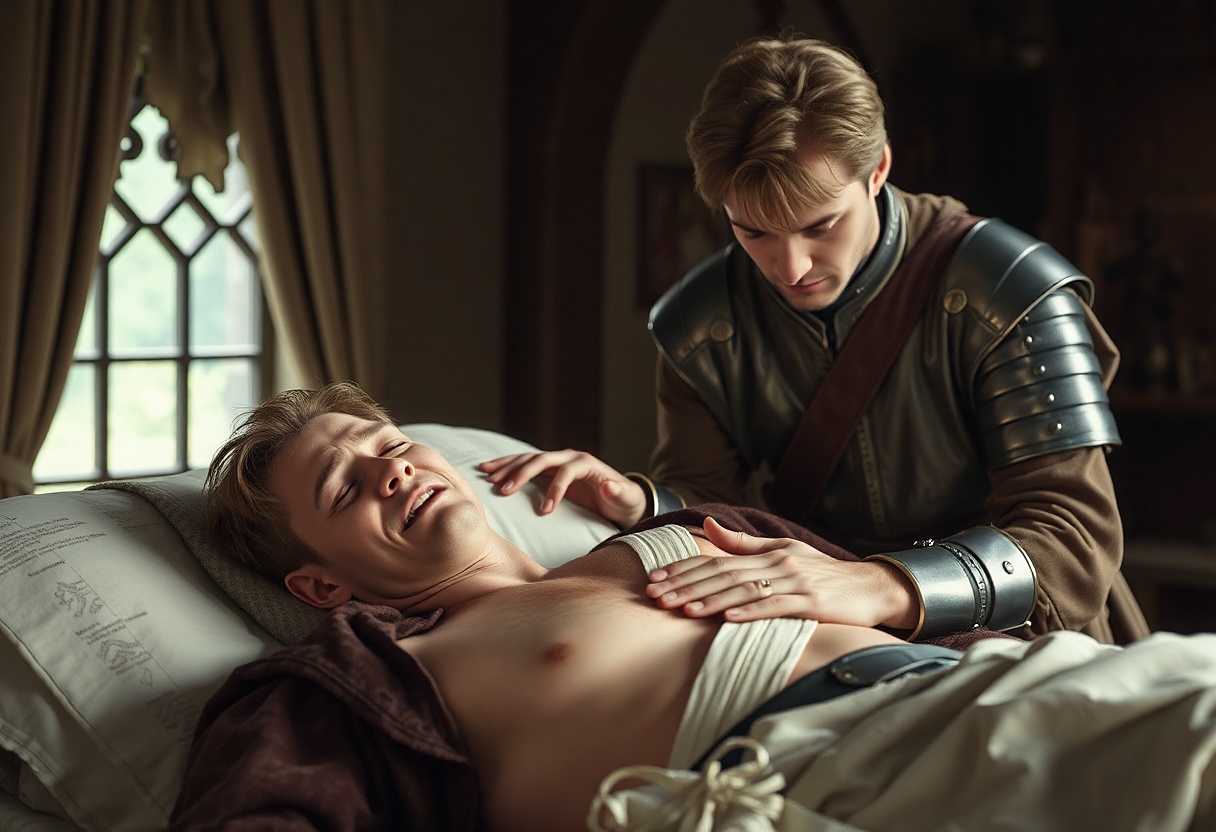 „Nemůžu tu ránu zašít,“ lamentoval Esebius. „Je hluboká. Kdyby to začalo hnisat, musí se to dostat ven. Nechce do postele,“ žaloval Rawenovi, „nařiď mu to, jsi jeho bratranec.“