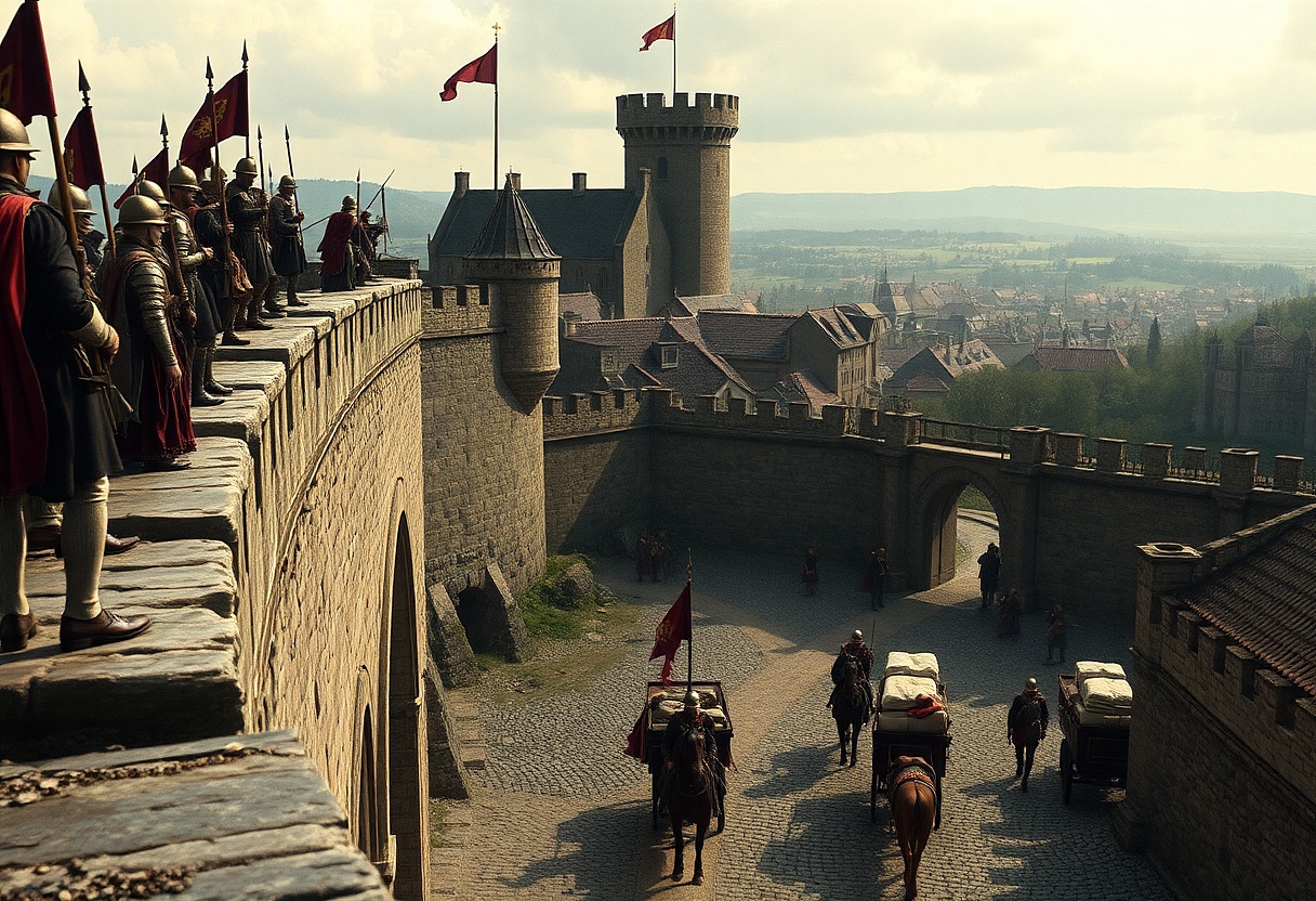 Ve městě byl zmatek. Na baštách stála děla. Kladkostroje podél vnitřní strany opevnění vytahovaly na hradby zásoby střeliva. Karavana se proplétala úzkými uličkami a mezi civilním obyvatelstvem míjela vojáky v uniformách mandefellské a rondorské armády. Každý někam spěchal. Voják od brány je dovedl až ke knížecímu paláci tyčícímu se na ostrohu obtékaném říčkou. Ve dvoře se kolem mezků seběhli sloužící.