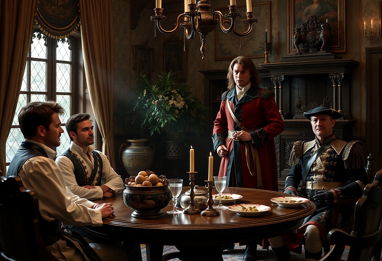 Tevin sebou vzal nejen Toofa, ale i maskovaného Rawena. Pokud se chtěli z města dostat zavčasu, musí jednat pružně. V knížecí pracovně na ně čekalo sedm lidí. Až na dámu nalévající čaj, nejspíš mandefellskou domácí paní a podsaditého důstojníka v mandefellské uniformě, Rawen všechny znal. Nad stolem s mapami se skláněli polní generál Vuan ab Tahom, poručík císařovy gardy Sirrel z Dettenu a císařův komoří Ibald z Lonivie. Působili přepadle, jako kdyby celou noc nespali. Na kanapíčku pod oknem seděly obě mandefellské princezny, Newinetta s Farfalou. Konvex mezi nimi nebyl. To bylo divné. Rawen v duchu zaklel. Generála Vuana ab Tahom měl rád. Už za chvíli se Vuan dozví, že je jeho synovec Gren mrtvý.