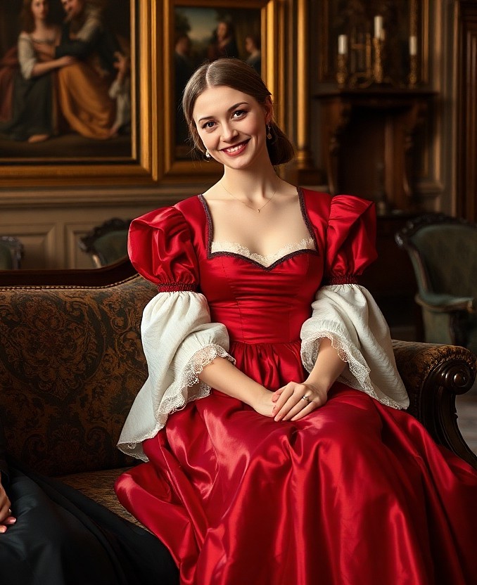 Navlečená v přiléhavé rudozlaté róbě se štědrým výstřihem, uhnízděná mezi polštáři s talířem koláčků v klíně, připomínala dámu zaujatou divadelním představením. Bylo vidět, jak se sestřinou nadutostí baví.