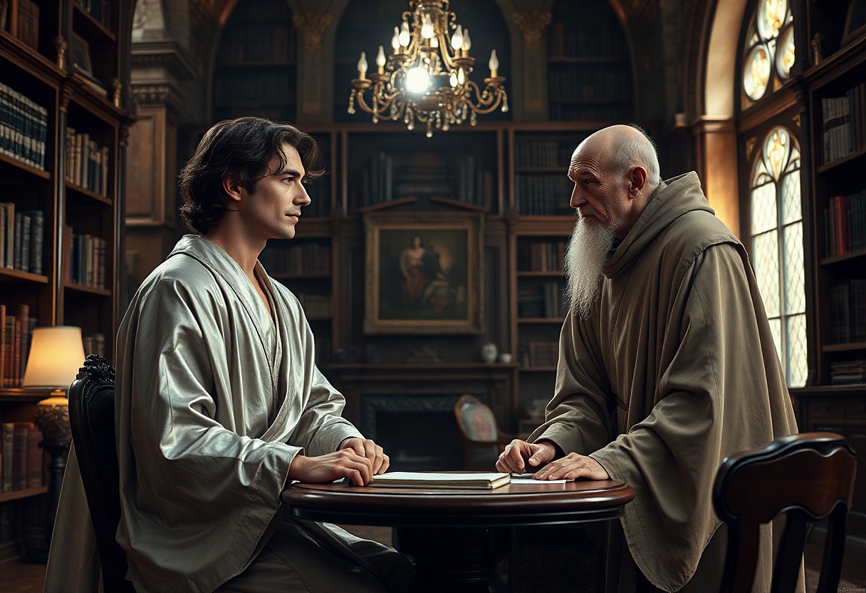 Graciella zbledla. „Okamžitě ztichni! Máš ty vůbec rozum, takhle bohyni urážet? Vždyť ti udělila svátost Osvícení! To je nic? Zjevně si tě cení. A ty ji místo respektu urážíš, když ignoruješ staletí zavedené mravy. Ukázala na drahokam na jeho hrudi. „Tímhle chceš nahradit obřadní plášť a klobouk? To je k smíchu!“