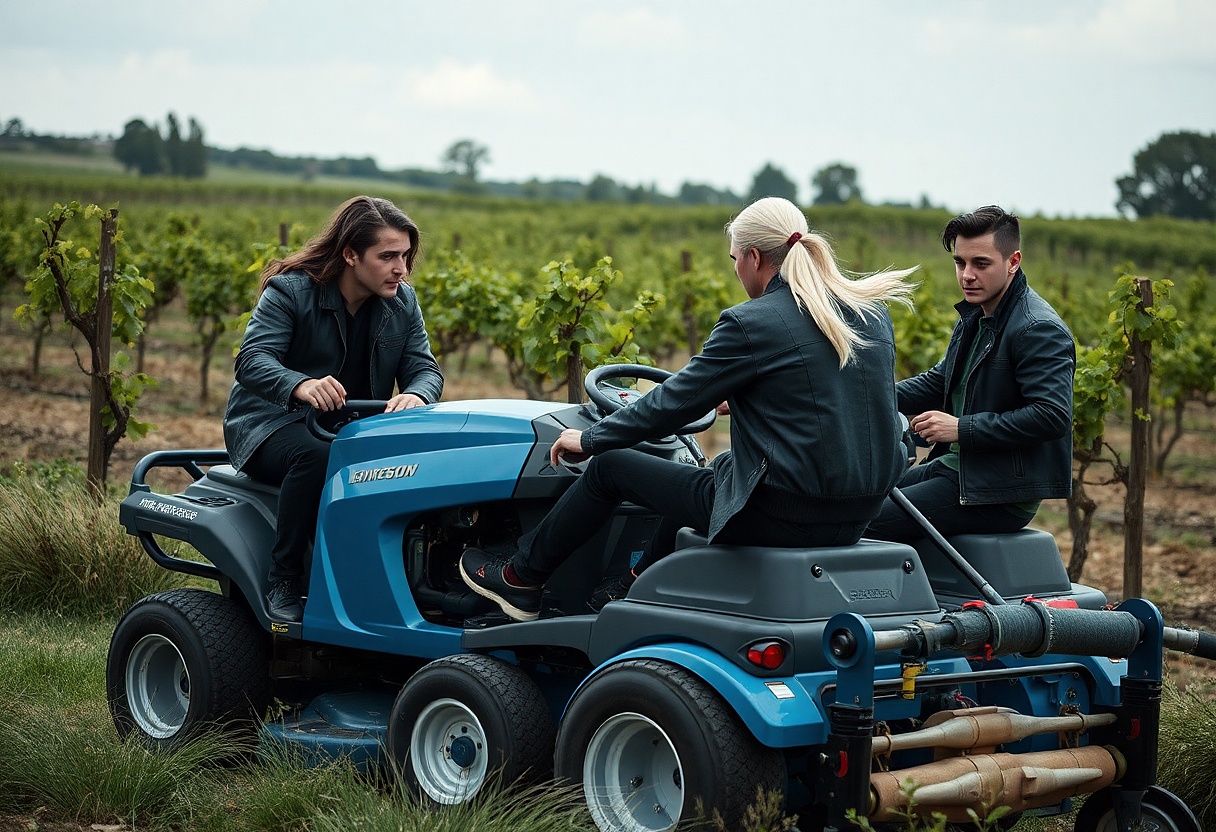 „To jsou zemědělské stroje, zlato.“ Arri přistoupil k traktorku, poplácal ho po sedáku a laškovně se zašklebil. „Jednomístné, jak vidíš. Slouží ke kosení travnatých pásů mezi vinicemi.“