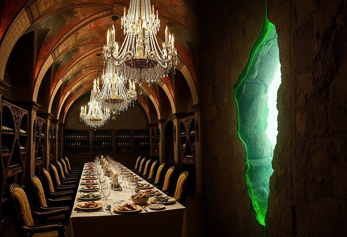 Byl to jen záblesk. Všichni čekali, že se zbraň zabodne do spáry mezi zdivem, nebo jen narazí o kámen, cinkne na zem, ale to se nestalo. Dřív, než vůbec doletěla ke zdi, s kvílivým svištěním otevřela divokou průrvu a zmizela ve tmě. Zůstala po ní jen díra nasávající vzduch ze sklepa do cizího průchodu. Ve sklepě se rozhostilo ticho.
