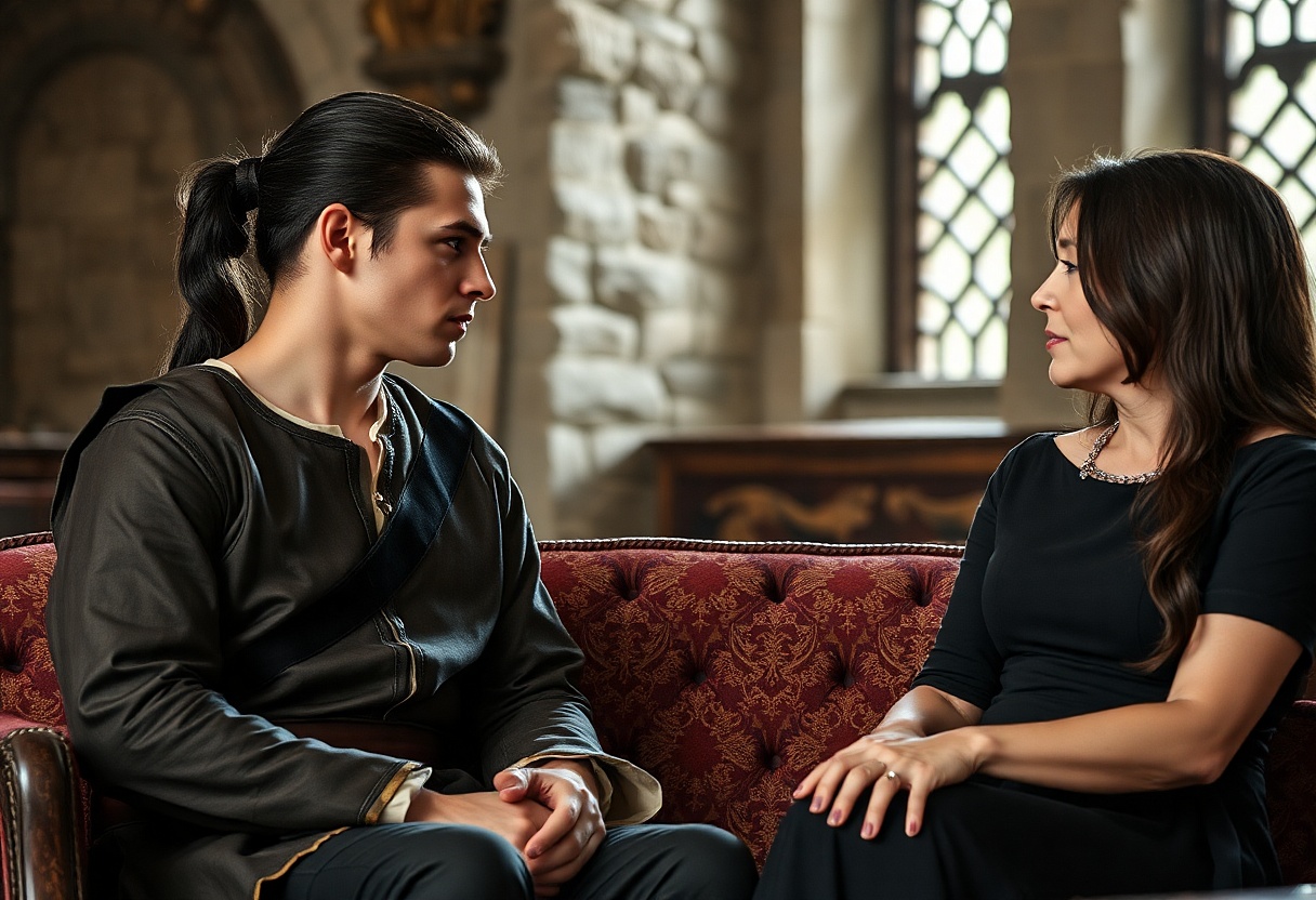 „Asi tě to nepotěší,“ řekla provinilým tónem, „ale tvé tři konkubíny jsem provdala. Musíš pochopit, že jsem pro osoby jejich... kvalifikace prostě neměla uplatnění. A prodat je na trhu, mi připadalo vzhledem k intimní povaze jejich služeb, nefér. Dostaly věno a našly si partnery na našich rodinných statcích. Zlobíš se moc?“