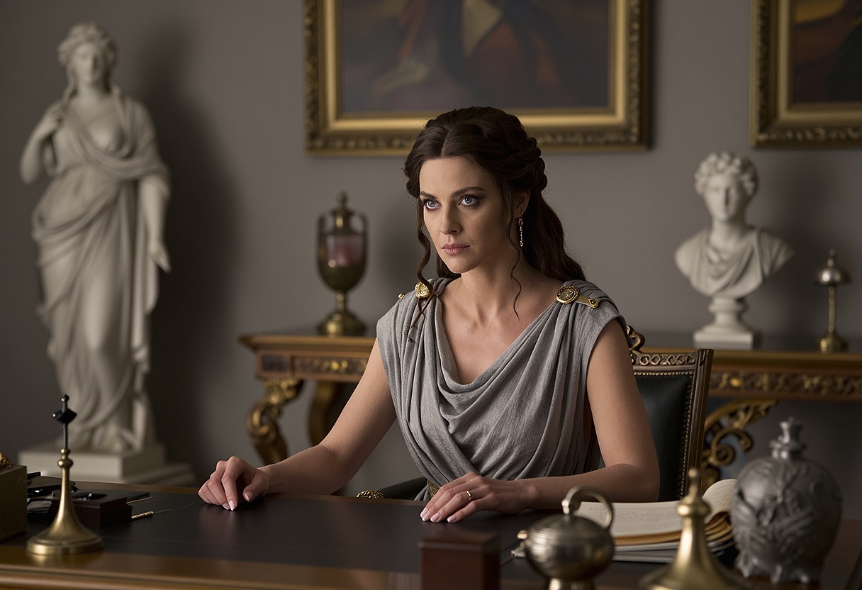 Bohyně Exis, nejvyšší vládkyně Podsvětí, seděla za stolem a pročítala nějaké papíry. Bez líčidel, s vlasy stočenými v nedbalém uzlu, zahalená do pohodlného, trochu ošoupaného domácího oděvu, působila téměř neškodně. „Jak to šlo na Seveneku?“ broukla.