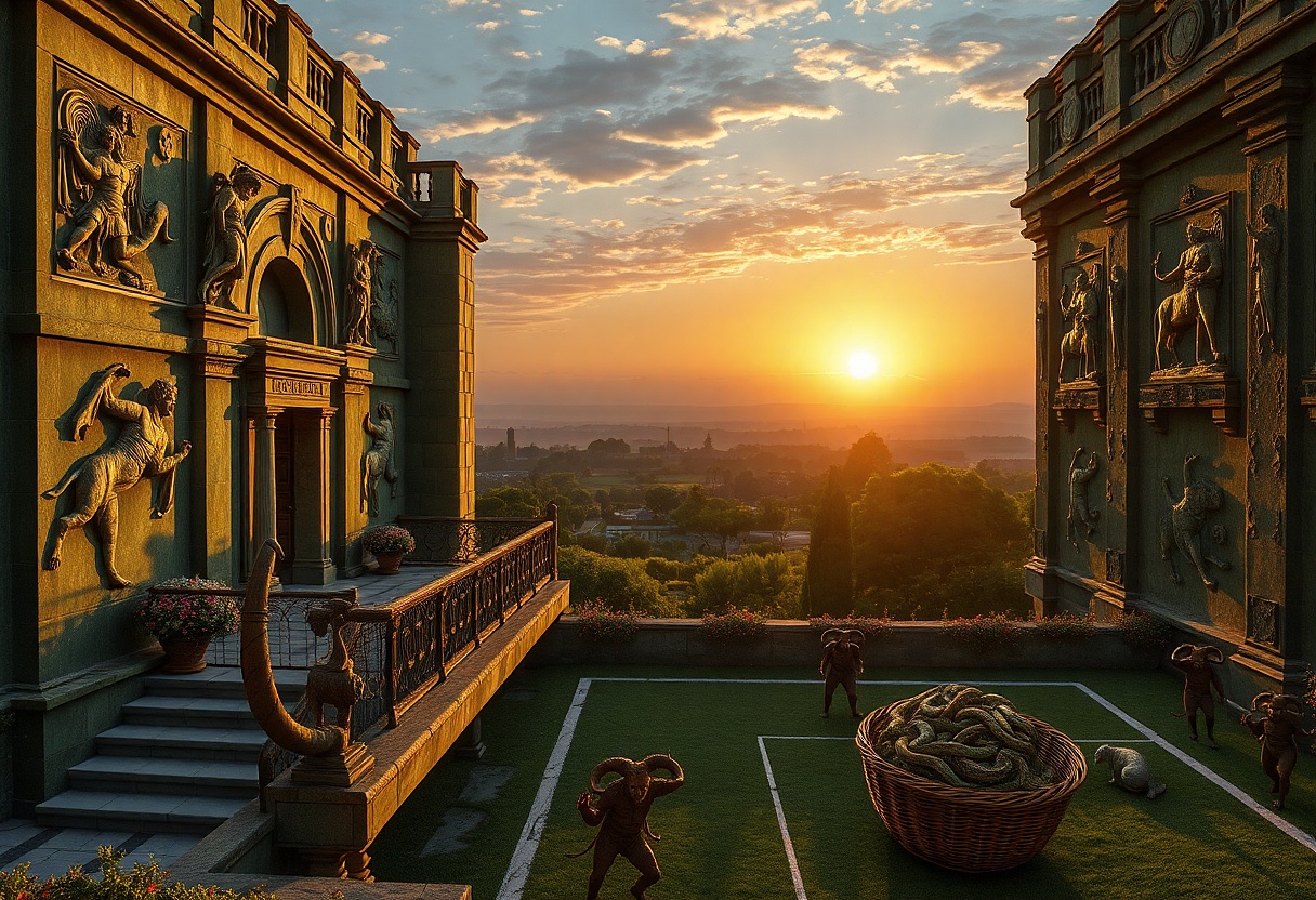 Na hřišti se zatím zelení a rudí borci přetahovali o proutěný košík, naplněný černými hady. Družstvo, kterému se podaří dopravit děravé zavazadlo do soupeřovy branky, získá bod. Hadi v koši podrážděně syčeli, stáčeli se do smyček, a pokoušeli se nejisté útočiště opustit. Feretu kdysi vymysleli znudění arcidémoni z Mizeonu. Jeden by nečekal, že něco tak hloupého se ujme i jinde.