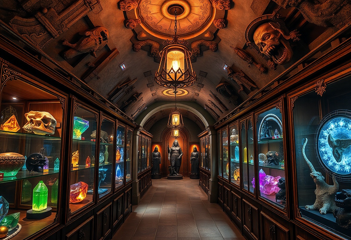 Viola nevěděla, kam se má podívat dříve. Tak tohle je ta slavná Podsvětní galerie bohyně Exis! Kráčela po rudém koberci uličkou mezi skříněmi a policemi. V prolukách stály podstavce se sochami démonů, bohů a draků. V nehybném vzduchu se vznášely prastaré vůně. Vodní lampy zavěšené na dlouhých řetězech postupně zesilovaly záři, když pod nimi někdo procházel a zase pohasínaly, když se ten někdo vzdaloval. Pozorované z dálky, zeslabené do barevných jiskřiček, připomínaly hvězdy na noční obloze. Na hlavní prohlídkovou trasu v pravidelných odstupech navazovaly chodby vedoucí do stran, které byly, kam až oko dohlédlo, lemovány dalšími úchvatnými kousky.