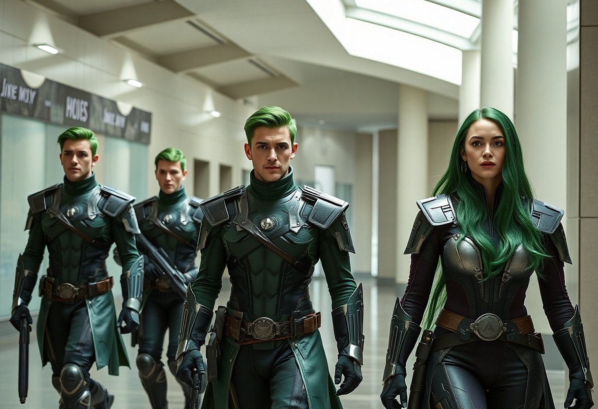 Přistáli na doskočišti v Hlavní příletové hale. Uvítal je jekot sirén a blýskání světel. Vypadalo to tam přesně tak, jak to Eudor předtím popsal. Velká prostora plná létacích strojů. Poplašné zařízení přivolalo vojáky. Jejich velitel, vysoký šlachovitý brůss s kamennou tváří, sourozencům oznámil, že bez povolení pronikli do zakázané zóny, a že se z toho budou zodpovídat.