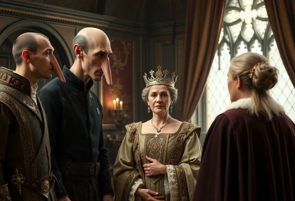 Dva nosatí archiváři z Kavanu, vyslanec Ahren a jeho tajemník Kenis, se hlásí u robustuanské královny na optimalizaci jejího legendárního podzemního archívu. Protože ani jeden nemají hudební sluch – který by jako kavanci mít měli, vymyslí si Trajanis báchorku o tajné kavanské sektě tesivelitů, kteří po staletích izolace ve službách utajené a jediné pravé bohyně Tesivel, ztratili pověstný kavanský hudební sluch, a proto se místo hudbě věnují bojovým uměním a špionáži… A proto přece není divu, že Aliance do svých řad naverbovala právě tesivelity. Trsuah je z Trajanisova lhaní celý zelený, ale Klarisa je z konspiračního dobrodružství naprosto nadšená a obšírně agentům vylíčí „lapálii“ s Larioniným pohárem, při které tragicky zemřel jeden z jejích manželů, příbuzný erektiadského Rexe, drak Rikkason.