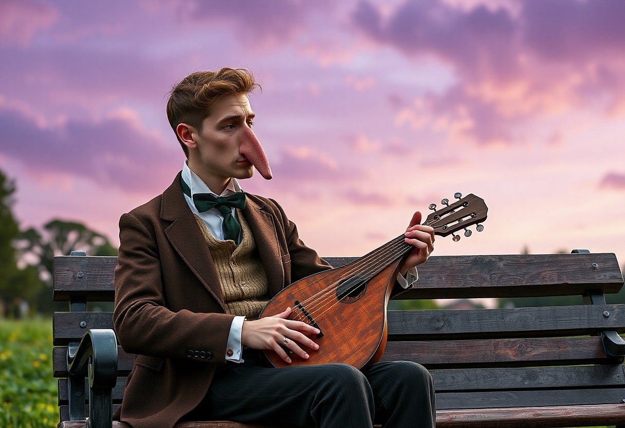 Janis nadskočil. Ani si nevšiml, že má společnost. Vedle něj na lavičce seděl chlápek – stejně nosatý jako on, jen místo nástoje s nevyslovitelným jménem držel na klíně jiný nástroj, vypadající jako otep vodovodních trubek svázaná drátem.