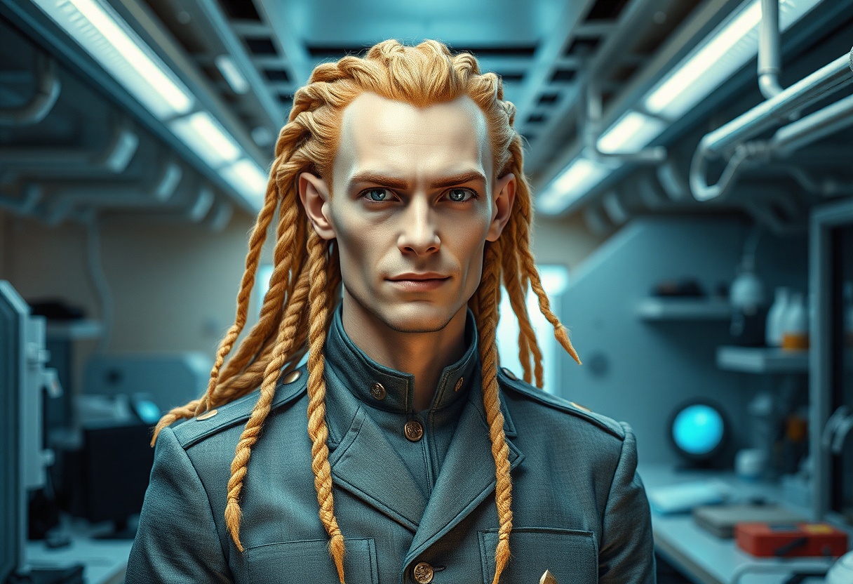 Náhle se v místnosti zablýsklo, a vzápětí se před stolem objevil zlatistě zářící wemur s bledou pokožkou, vlasy barvy slámy a pichlavýma modrozelenýma očima. Měl na sobě uniformu šedozelené barvy, do které byla vetkaná perleťová vlákna, a nízké měkké boty ze stříbrného materiálu, který Janisovi podezřele připomínal krenevskou kůži. Prostě švihák.
