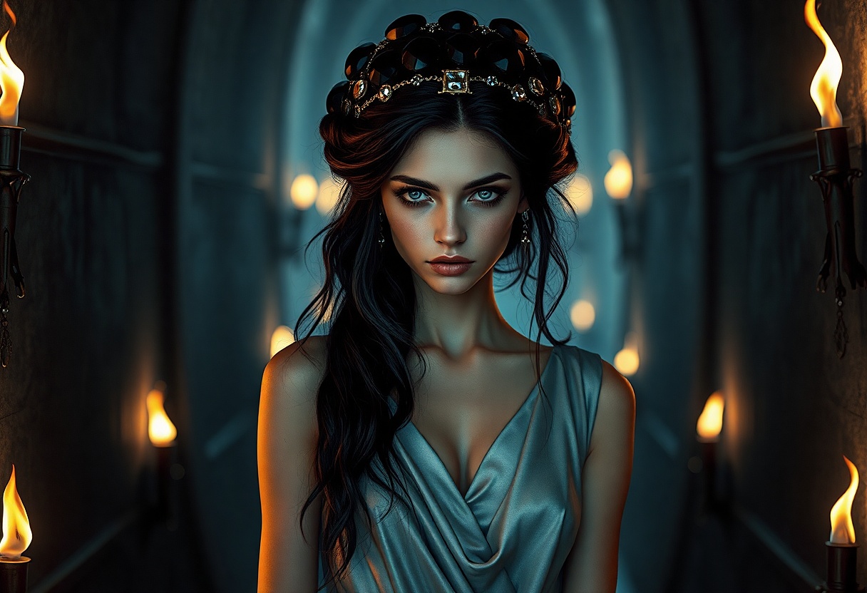 Melodie v sále vygradovala k závěrečnému finále a pak se ozval dunivý potlesk. Vzápětí se dveře otevřely a lichové u schodiště srazili paty. Nejdřív se objevil důstojník a hned za ním zavěšená do vysokého muže s nápadně vrásčitou kůží cupitala královna Klarisa. Byla oblečená v temně zelené toaletě, která zvýrazňovala její jasně zelené oči. V černých složitě spletených vlasech jí seděla malá korunka. Vypadala mladě, i když jí bylo hodně přes pět století. Ale to u lichů není žádný věk. Svěžest a čipernost, která z ní přímo tryskala, se spíše dala očekávat u dospívající dívky než u osoby spočívající na trůně, nehledě na to, že šlo o čerstvou vdovu.